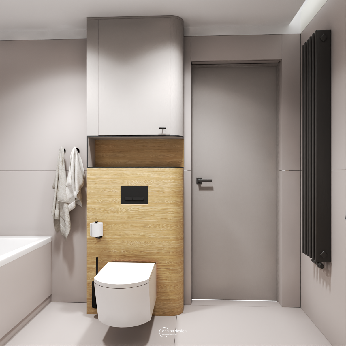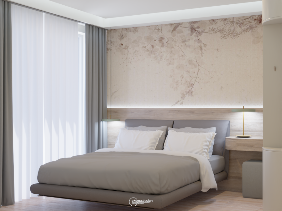 Projekt obejmował dwie łazienki, garderobę oraz trzy pokoje sypialne. Mieszkanie zostało urządzone z dbałością o każdy szczegół, a połączenie stonowanych kolorów, czarnych i białych dodatków oraz eleganckich kształtów tworzy wyjątkową atmosferę.