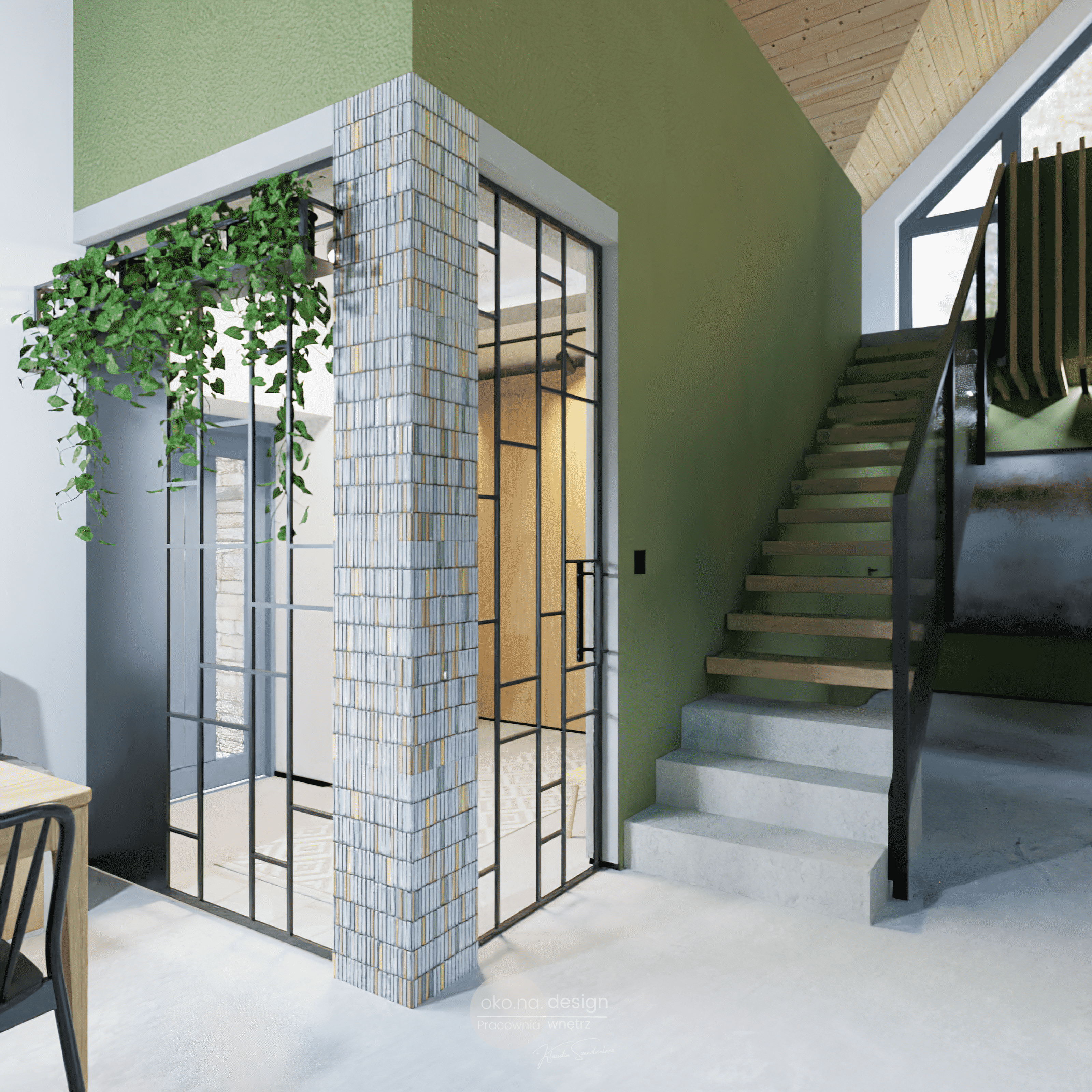 Projekt domu z wysokim sufitem w Lanckoronie obejmował: