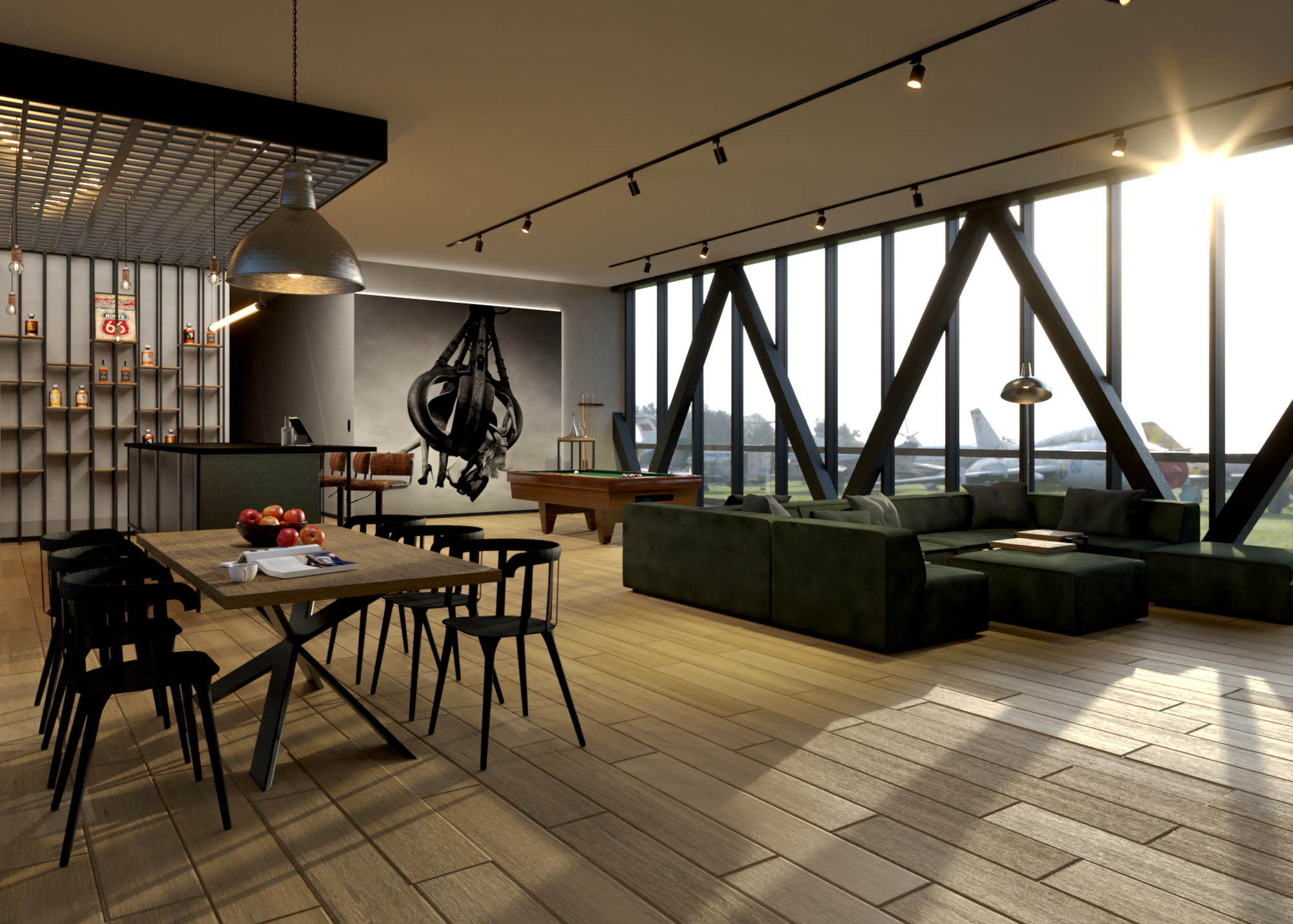 Niezwykłe mieszkanie nad hangarem samolotowym, zostało zaprojektowane dla pary, która często podróżuje. Mieszkańcy są miłośnikami zdjęć Szymona Brodziaka, które znalazły tu swoje miejsce.