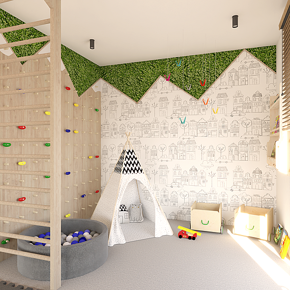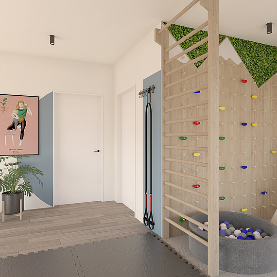Fitness Fun Zone to przestrzeń łącząca fitness room z kreatywną bawialnią.
